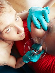 Hot blowjob scene where both boys wind up with a mouthful and spit it out into their hands